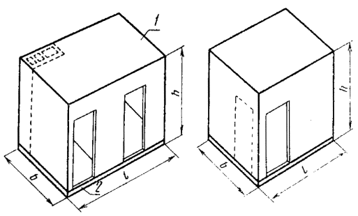 Примечание. Справочная масса определена для кабин, имеющих стены толщиной 50 мм, плиты потолка - толщину 40 мм, плиты днища - толщину 60 мм и плотность железобетона 2500 кг/куб.м3, без учета массы конструкции пола , облицовочных материалов стен и оборудования.