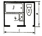 5СК - совмещенный санитарный узел (ванна, умывальник, унитаз и трап) с входом в передней стене;