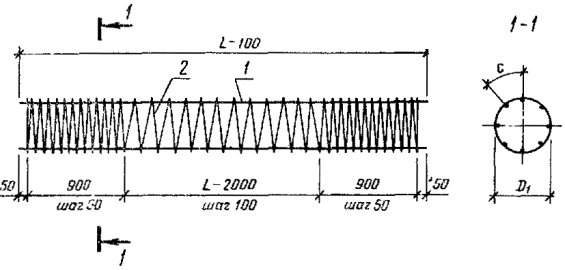 На расстоянии 0,5 м от концов каркаса спираль должна быть приварена в каждом пересечении к продольным стержням.