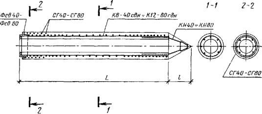 - поперечная арматура (спираль) - арматурная проволока класса Вр-I или B-I по ГОСТ 6727-80, арматура наконечника - горячекатаная арматурная сталь класс A-I по ГОСТ 5781-82.