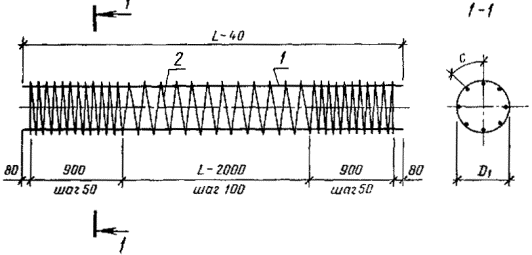 2.11. Концы секций с элементами сварных стыков должны быть усилены спиралями из проволоки класса Вр-I или B-I по ГОСТ 6727-80.