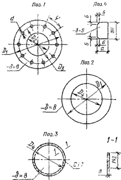 2.7. Форма и размеры арматурных каркасов секций с элементами болтовых стыков должны соответствовать указанным на черт. 5 и 6.