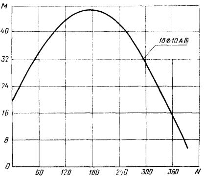 На графиках приняты обозначения: N - нормальная сила, тс, и М - изгибающий момент, относительно оси сваи или сваи-оболочки, т×см, передаваемые на сваю или сваю-оболочку при эксплуатации здания или сооружения. Предполагается, что свая или свая-оболочка по всей длине находится в грунте и ее продольный изгиб не учитывают.