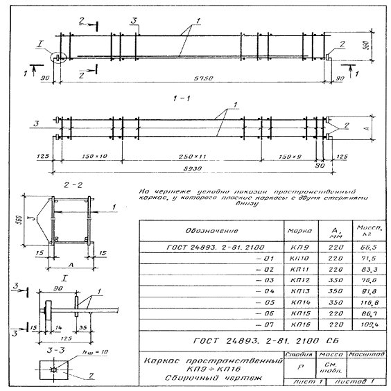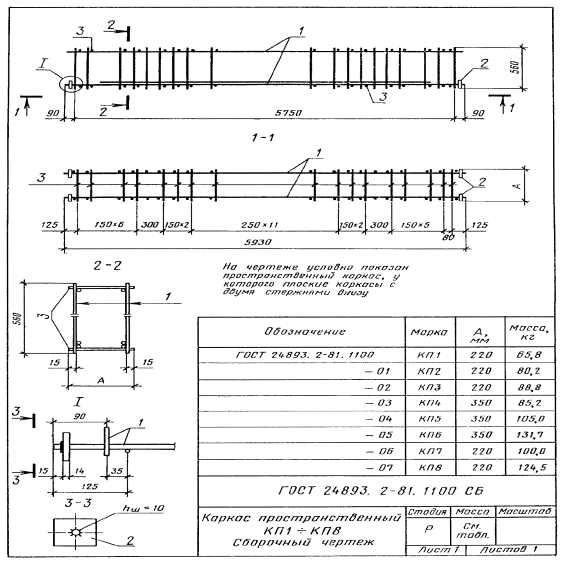 4. Спецификация арматурных и закладных изделий пространственных каркасов балок - по листам 1, 2 документа 1100, балок, предназначаемых для зданий с расчетной сейсмичностью 7 - 9 баллов - по листам 1, 2 документа 2100 ГОСТ 24893.2-81.