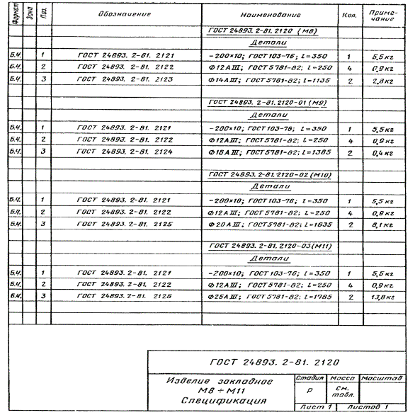 3. Форма и размеры арматурных изделий, балок, предназначенных для зданий с расчетной сейсмичностью 7 - 9 баллов, должны соответствовать указанным на черт. 2100 СБ, 2110 СБ ГОСТ 24893.2-81, закладных изделий - на черт. 2120 СБ, 2130 СБ ГОСТ 24893.2-81.