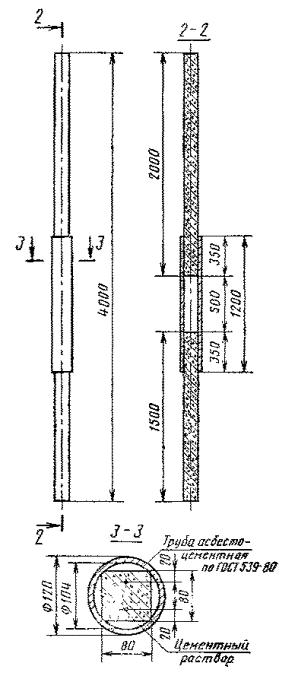 3 - составные (безопасные) постоянного поперечного сечения с использованием в качестве соединительного элемента муфты из асбестоцементной трубы.