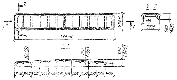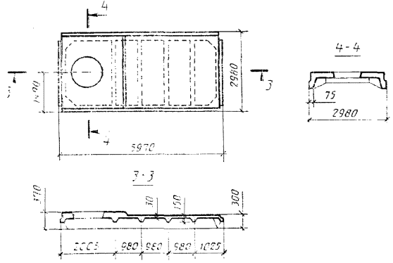 1.2.6. В случаях, предусмотренных проектом здания, плиты могут иметь дополнительные отверстия, вырезы в полках, углубления па наружных гранях продольных ребер для устройства бетонных шпонок между смежными плитами, а также дополнительные закладные изделия.
