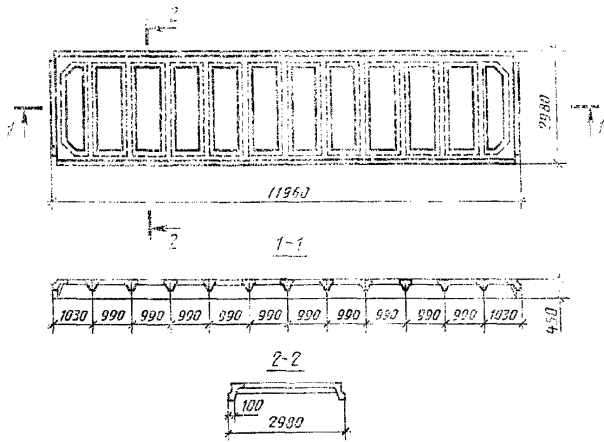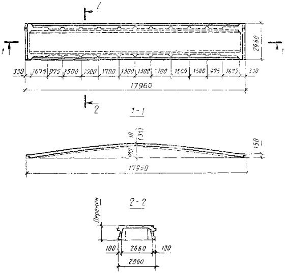 1.2.1. Железобетонные ребристые плиты координационными размерами 1,5´6, 1,5´12, 3´6, 3´12 и 3´18 м изготовляют предварительно напряженными, а доборные ребристые и плоские - с ненапрягаемой арматурой.