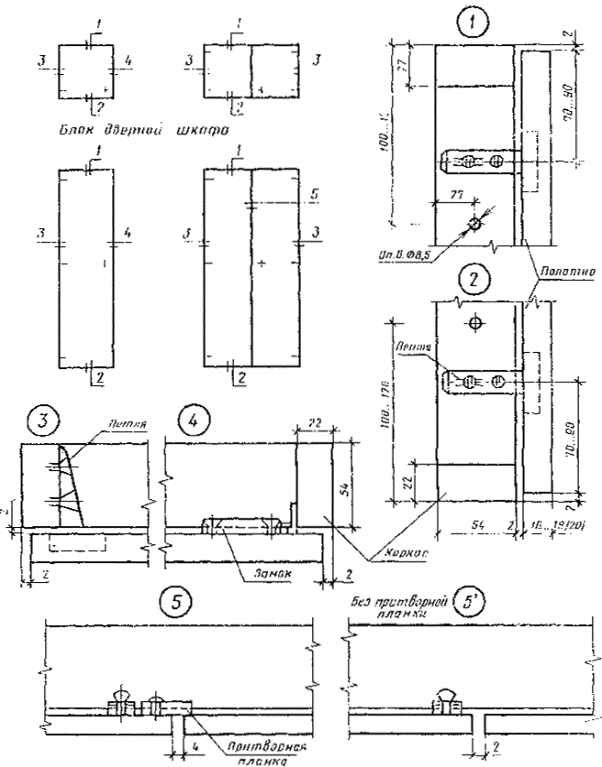 1.2. Дверные блоки шкафов и антресолей состоят из полотен, навешенных на каркас из деревянных брусков на петли.