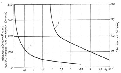 1 - для тяжелого бетона; 2 - для легкого бетона
