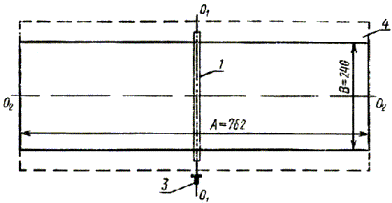 2.5.4. Две угольные дуговые лампы необходимо устанавливать симметрично относительно осевой линяй вала крестовины барабана на разных уровнях. Расстояние между центрами ламп принимают согласно черт. 2.