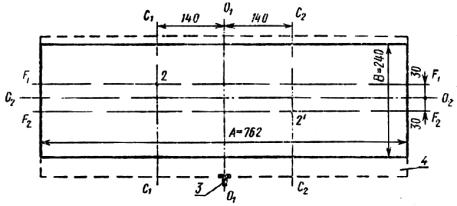 3.1.3. Образцы размерами 190´230 и 70´230 мм должны быть укреплены на металлические кассеты, размеры которых соответственно 200´240 и 80´240 мм (черт. 3). Между образцами и кассетой прокладывают целлофановую пленку. Образцы крепят к кассетам при помощи металлической пластинки. Кассеты должны иметь подвески (скобы) для установки их в барабане аппарата.