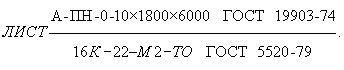 Листовой прокат повышенной точности прокатки (А), нормальной плоскостности (ПН), с обрезанными кромками (О), размером 10´1800´6000 мм из стали марки 16К, категории 22, с определением относительного сужения в направлении толщины проката (М2), термически обработанный (ТО):