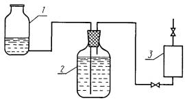 1 - склянка с насыщенным раствором хлористого натрия; 2 - пробоотборник с нефтепродуктом; 3 - топливная камера аппарата