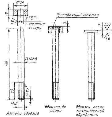 Ширину нахлестки b подбирают так, чтобы при испытаниях образцов разрушение происходило по паяному шву.