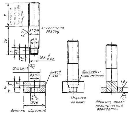 2.1.3. Образцы, установленные ИСО 5187, являются основными, однако они не охватывают всех видов паяных соединений и типов нагружений. В целях более полного определения свойств паяных соединений допускается применение дополнительных типов и размеров образцов.