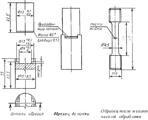 Пайку образцов типов III - V допускается проводить в любом положении.