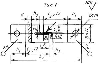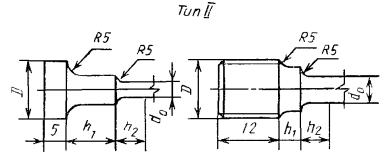 Форма и размеры головок плоских и цилиндрических образцов, а также размеры переходных частей от головок образца к его рабочей части не являются обязательными и определяются способом крепления в захватах испытательной машины. Варианты головок приведены на черт. 14 - 16 и в табл. 8 приложения 2.
