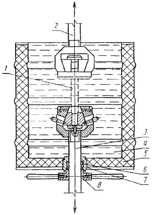 Для удержания образцов (типов I и II) в вертикальном положении, указанном на черт. 1 - 3, во избежание нагрузки на соединение во время охлаждения используют опорное устройство. Опорное устройство не должно мешать сужению и расширению образца.