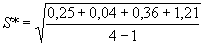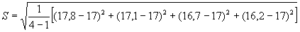 Из табл. 16 для n* = 4 и β = 0,95 находят h = 1,46, т.е.