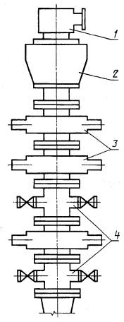 1 - устьевой герметизатор (21); 2 - кольцевой превентор (15); 3 - плашечный превентор (14); 4 - устьевая крестовина (70)