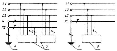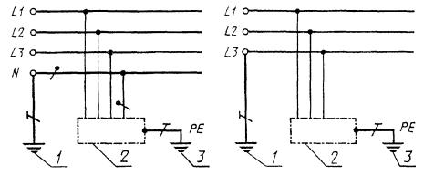 1 - заземление источника питания, 2 - открытые проводящие части, 3 - заземление