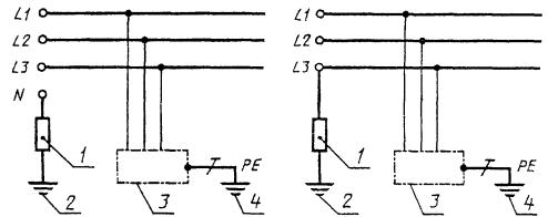 1 - сопротивление; 2 - заземление источника питания, 3 - открытые проводящие части; 4 - заземление корпусов оборудования
