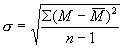 Среднее квадратическое отклонение (σ) вычисляют по формуле
