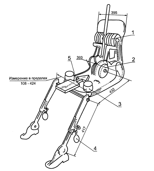 4.9.1 Если объемный механизм определения точки Н скользит назад, применяют следующую процедуру: дают механизму возможность скользить назад до тех пор, пока не отпадет необходимость в использовании передней ограничительной горизонтальной нагрузки на коленный Т-образный шарнир, т.е. до тех пор, пока задняя часть механизма не соприкоснется со спинкой сиденья. В случае необходимости следует изменить положение голени и ступни.