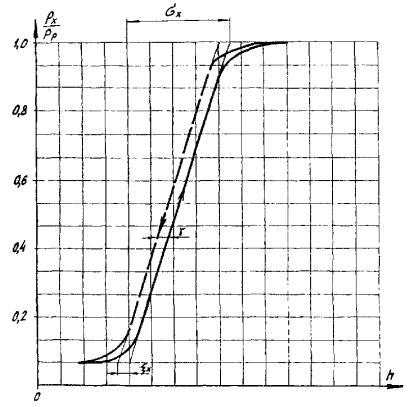 3.2.2. Зона нечувствительности регулятора x выражается в процентах и определяется как разность значений регулируемого параметра, необходимая для изменения направления движения РО на противоположное, отнесенная к значению верхнего предела настройки РП, по формуле