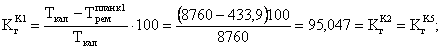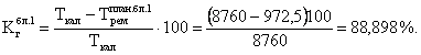 где Ткал - календарный отрезок времени, на который планируется готовность оборудования к работе, ч;