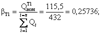 Для каждого агрегата очереди по формуле (14) определяем bi - долю номинального расхода тепла на турбоагрегат (долю установленной тепловой мощности котлоагрегата) в суммарном номинальном расходе тепла на турбоагрегаты и суммарной установленной тепловой мощности котлоагрегатов.