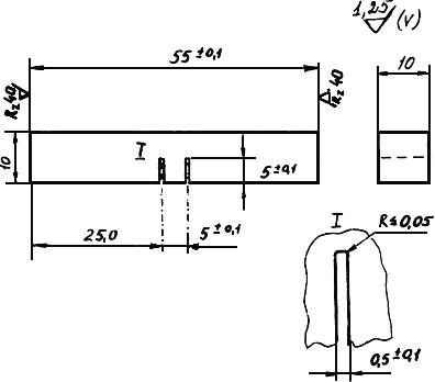 Рисунок Б.1 - Образец с двумя надрезами для определения критического раскрытия надреза и горячей твердости