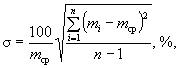 33. При взвешивании всех транспортных сосудов вычисляется коэффициент вариации σ массы горных пород в одном сосуде по формуле