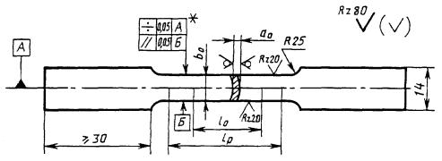 Примечание. При испытании высокопрочных сталей рекомендуется использовать поле допуска на ширину образца для создания утонения в середине расчетной части.