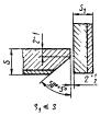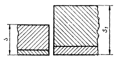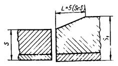 При разнице толщины свариваемых деталей свыше значений, указанных в табл. 43, на детали, имеющей большую толщину s1, со стороны основного слоя должен быть сделан скос до толщины тонкой детали s как указано на черт. 3.