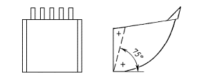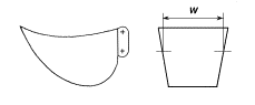 Задняя стенка такого ковша должна выступать за поперечную линию, соединяющую задние углы боковых стенок, а режущая кромка не должна выступать за поперечную линию, соединяющую передние углы боковых стенок.