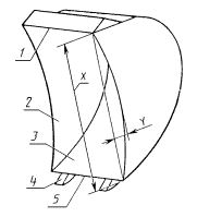 1 - задняя стенка; 2 - боковая стенка; 3 - днище; 4 - зуб; 5 - режущая кромка