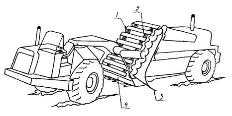 1 - цепи; 2 - скребки: 3 - элеватор; 4 - нож