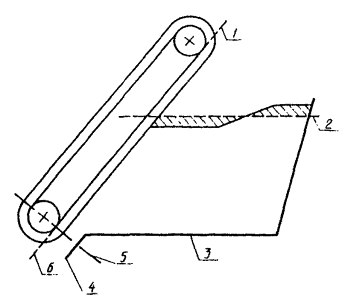 д) плоскость (или линейное продолжение) внутренней траектории скребков элеватора, ближайших к грузу в ковше (черт. 3);