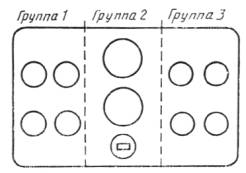 5.2. Прочие приборы, относящиеся к двигателю (группа 1), например, указатель температуры двигателя, указатель давления масла в двигателе, или к трансмиссии (группа 3), например, указатель давления масла в коробке передач, указатели температуры и давления масла в гидротрансформаторе, должны быть расположены с правой или с левой стороны приборного щитка, как показано на чертеже, если они не встроены в общий корпус с группой 2.