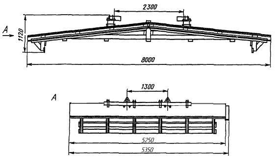 Крыша должна иметь свесы в сторону промежутков между штабелями не менее 500 мм, в сторону проездов - не менее 750 мм.