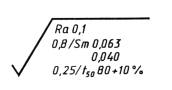 В обозначении одинаковой шероховатости поверхностей, плавно переходящих одна в другую, знак О не приводят (черт. 19).