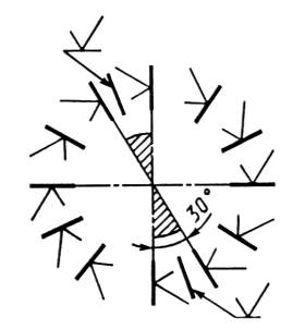 Высота знака условного обозначения направления неровностей должна быть приблизительно равна h. Толщина линий знака должна быть приблизительно равна половине толщины сплошной основной линии.