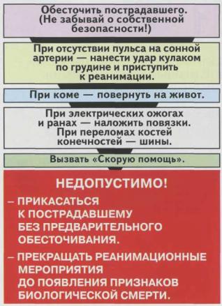 СХЕМА ДЕЙСТВИЙ В СЛУЧАЯХ ПОРАЖЕНИЯ ЭЛЕКТРИЧЕСКИМ ТОКОМ