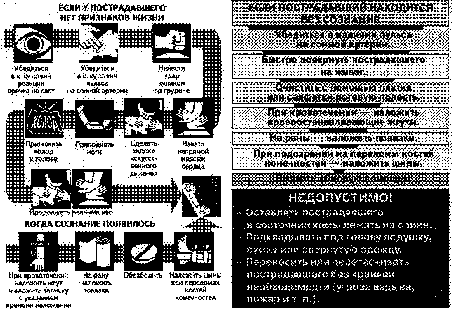 Эта схема является универсальной для всех случаев оказания первой помощи на месте происшествия. |