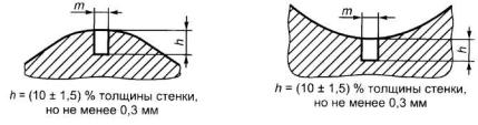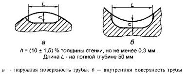 - глубина (высота) h устанавливается равной (10 ± 1,5) % толщины стенки трубы;