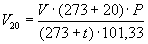 Для удобства расчета V20 следует пользоваться таблицей коэффициентов (приложение 2). Для приведения воздуха к стандартным условиям надо умножить V на соответствующий коэффициент.