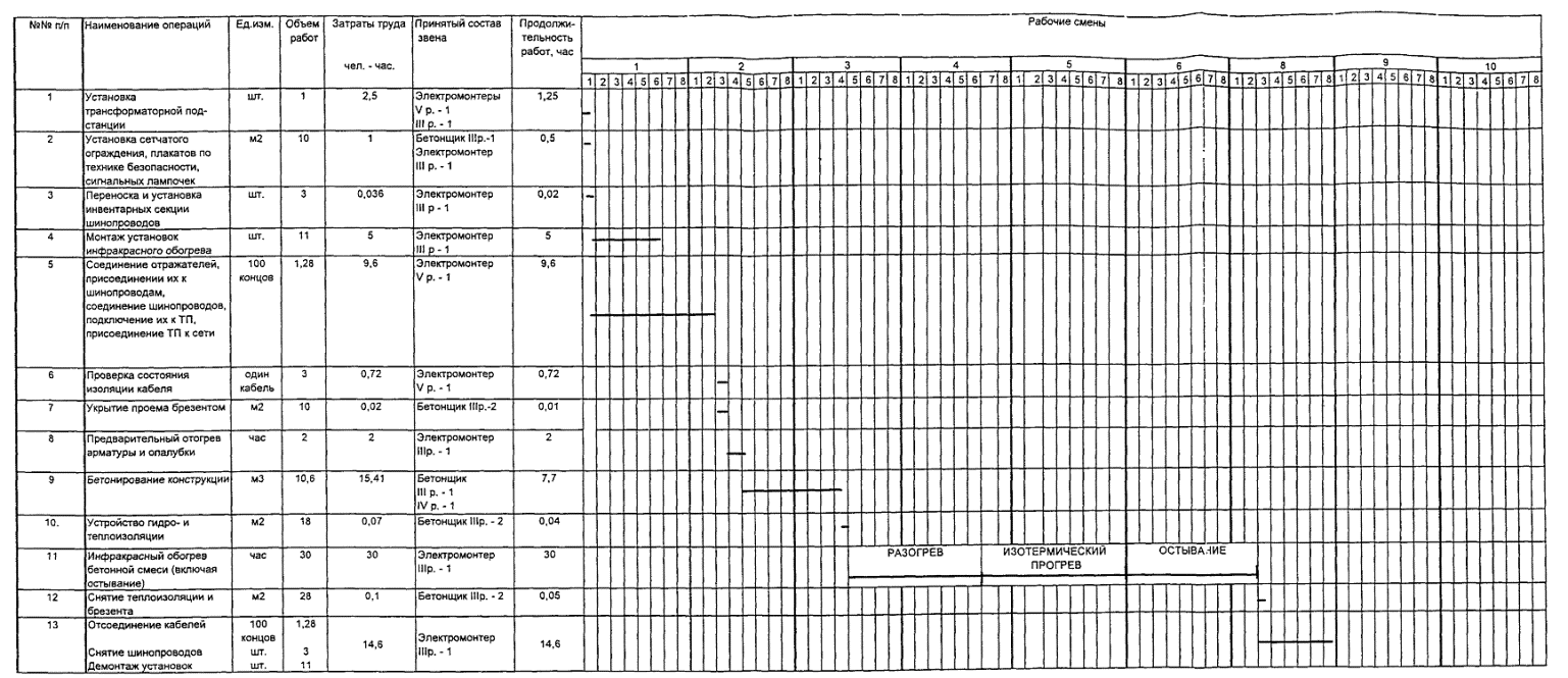 электрические параметры обогрева и температурный режим, обеспечивающий необходимый набор прочности;