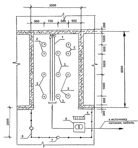 на ровной площадке на расстоянии не более 25 м от участка электрообогрева конструкции устанавливают трансформаторную подстанцию типа КТП-ТО-80/86;